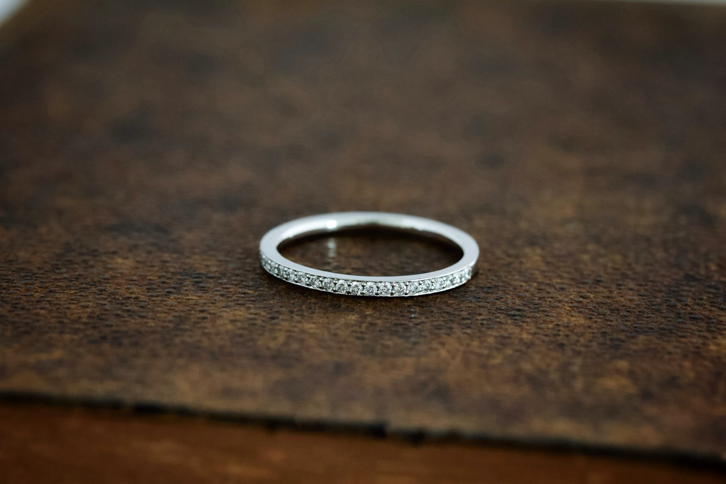 熟練の職人が半周にわたり1ピースずつ丁寧に彫留したリング。
