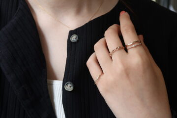 細いひねりのリングと平打ちのリングを重ねて着けたように見えるデザイン♪